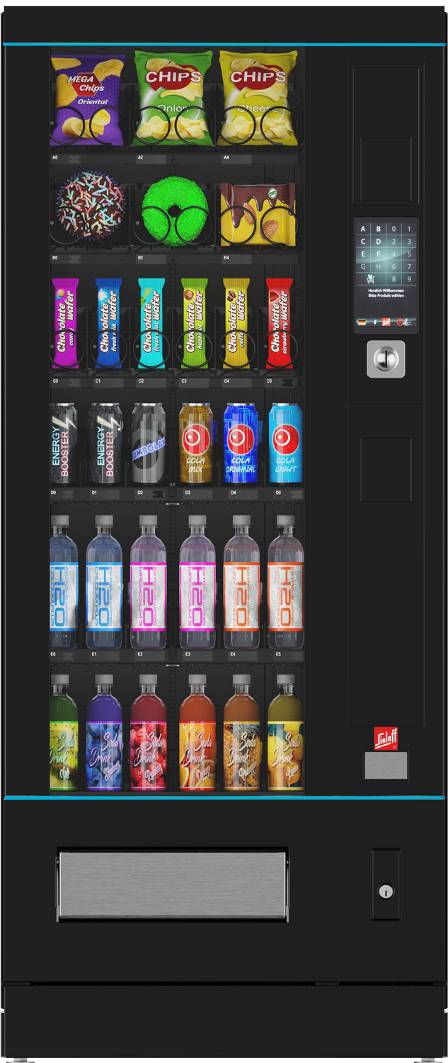 Der Automat ist nagelneu und bietet Ihnen die modernste Technik im Vendingbereich an. Die Konfiguration für die Produkte kann individuell nach Ihren wünschen angepasst werden.